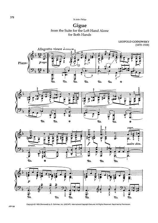 Digital Sheet Music for Gigue (for Both Hands) - from Suite for the Left Hand Alone by Leopold Godowsky scored for Piano Solo; id:439534