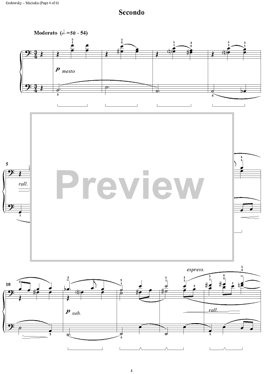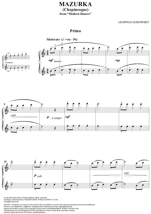 Digital Sheet Music for Mazurka by Leopold Godowsky scored for 1 Piano, 4 Hands; id:284404