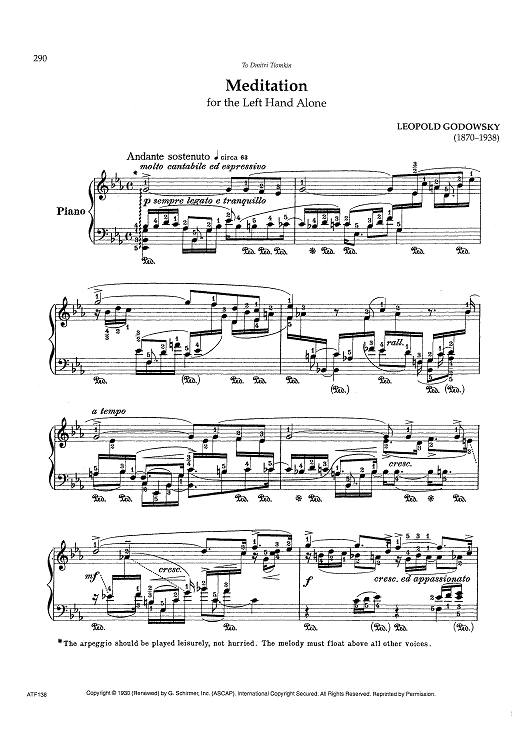 "Meditation for Left Hand Alone" Sheet Music by Leopold Godowsky
