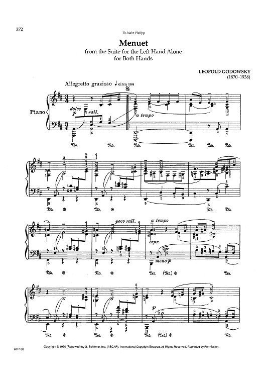 "Menuet (for Both Hands) - from Suite for the Left Hand Alone" Sheet Music by Leopold Godowsky