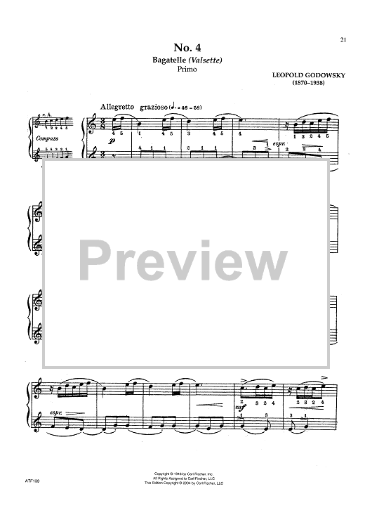 Digital Sheet Music for No. 4 Bagatelle (Valsette) - from Second Suite by Leopold Godowsky scored for 1 Piano, 4 Hands; id:439570
