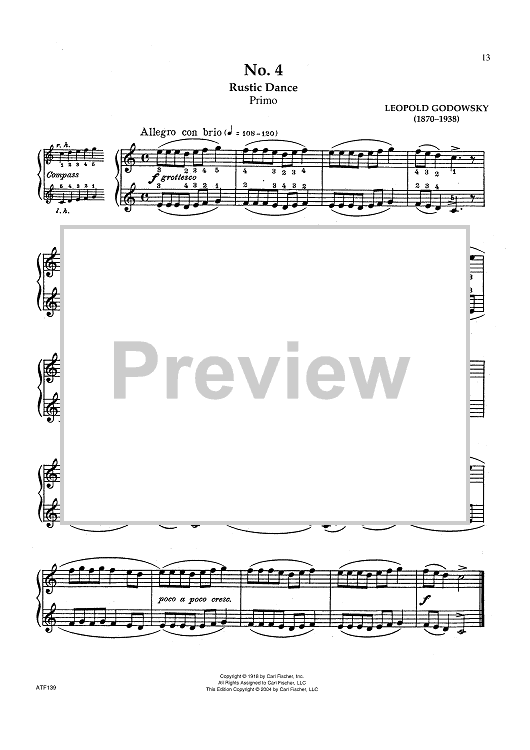 Digital Sheet Music for No. 4 Rustic Dance - from First Suite by Leopold Godowsky scored for 1 Piano, 4 Hands; id:439564