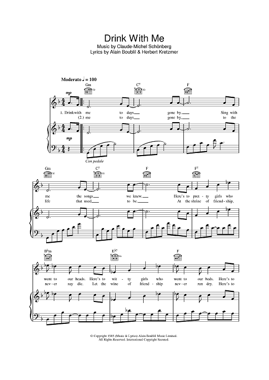 "Drink With Me (To Days Gone By)" Sheet Music by Claude-Michel Schonberg