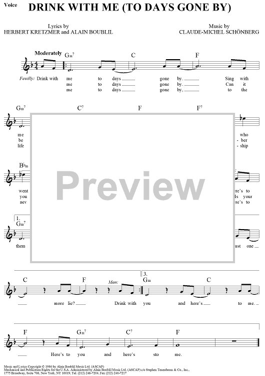 "Drink With Me (To Days Gone By)" Sheet Music by Claude-Michel Schonberg