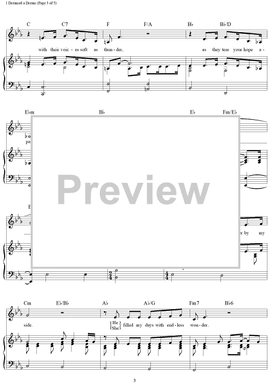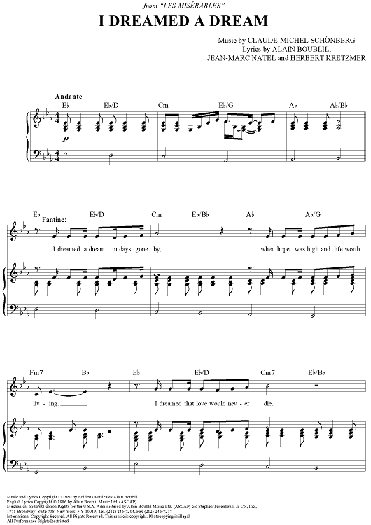 Digital Sheet Music for I Dreamed A Dream (J'avais Rêvé) by Claude-Michel Schonberg, Herbert Kretzmer, Alain Boublil, Jean-Marc Natel scored for Piano/Vocal/Chords; id:367061