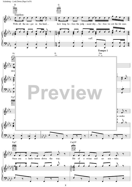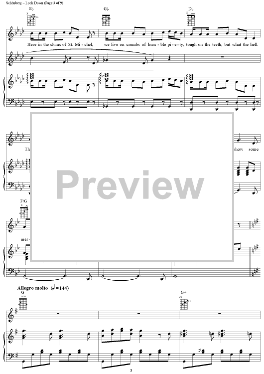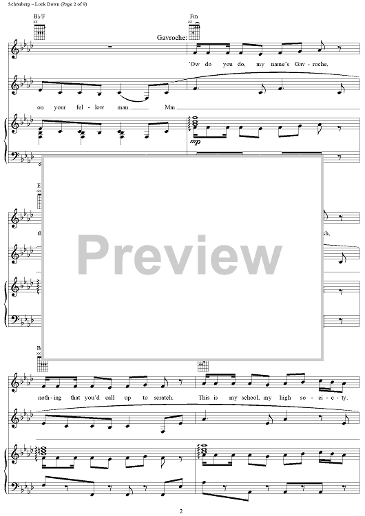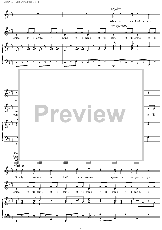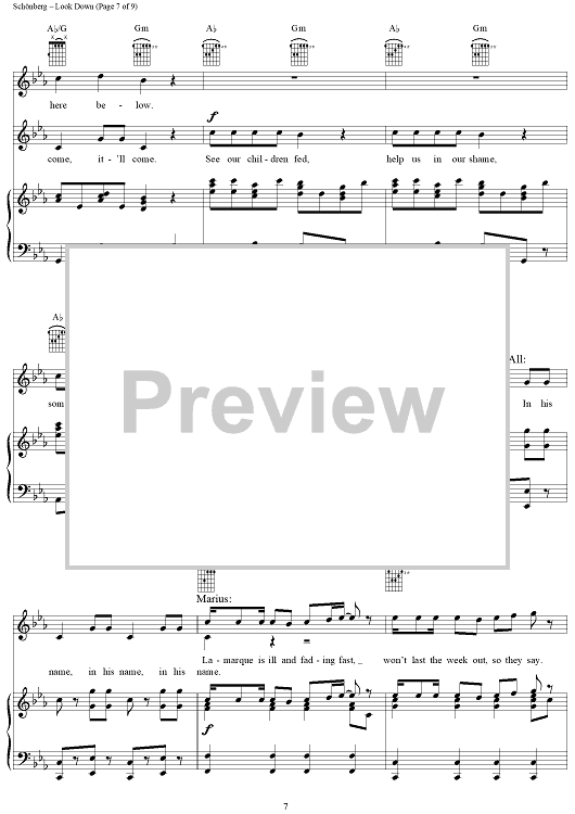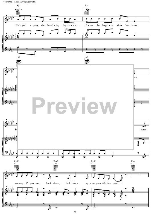 Digital Sheet Music for Look Down by Claude-Michel Schonberg, Herbert Kretzmer, Alain Boublil, Jean-Marc Natel scored for Piano/Vocal/Chords; id:367175
