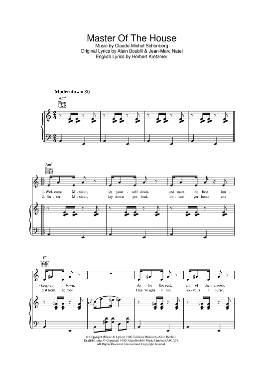 Digital Sheet Music for Master Of The House by Claude-Michel Schonberg, Herbert Kretzmer, Alain Boublil, Jean-Marc Natel scored for Piano/Vocal/Chords; id:401436