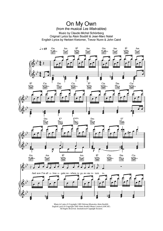 Digital Sheet Music for On My Own (Mon Histoire) by John Caird, Trevor Nunn, Claude-Michel Schonberg, Herbert Kretzmer, Alain Boublil, Jean-Marc Natel scored for Piano/Vocal/Chords; id:375790