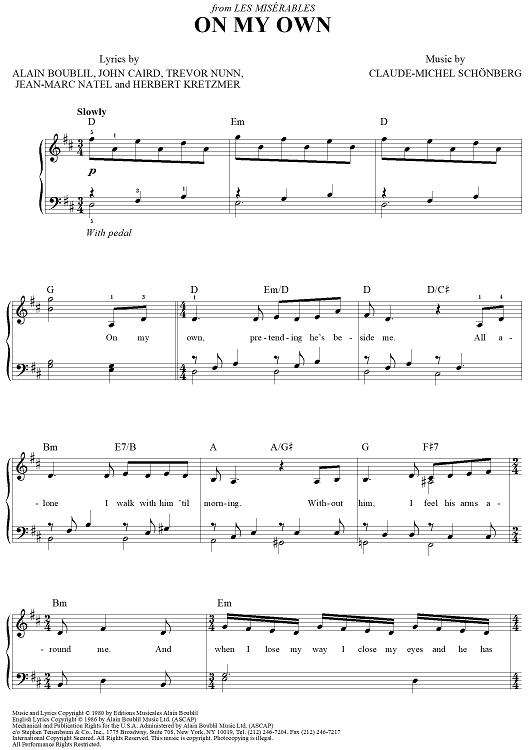"On My Own (Mon Histoire)" Sheet Music by Claude-Michel Schonberg