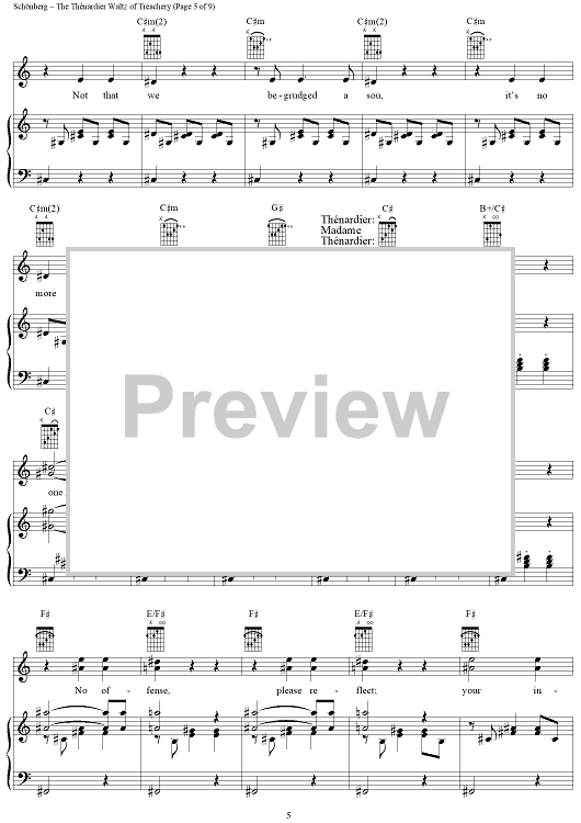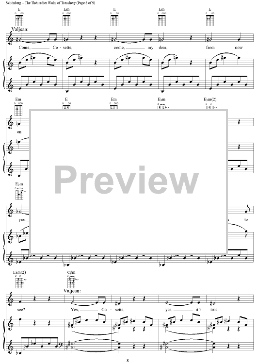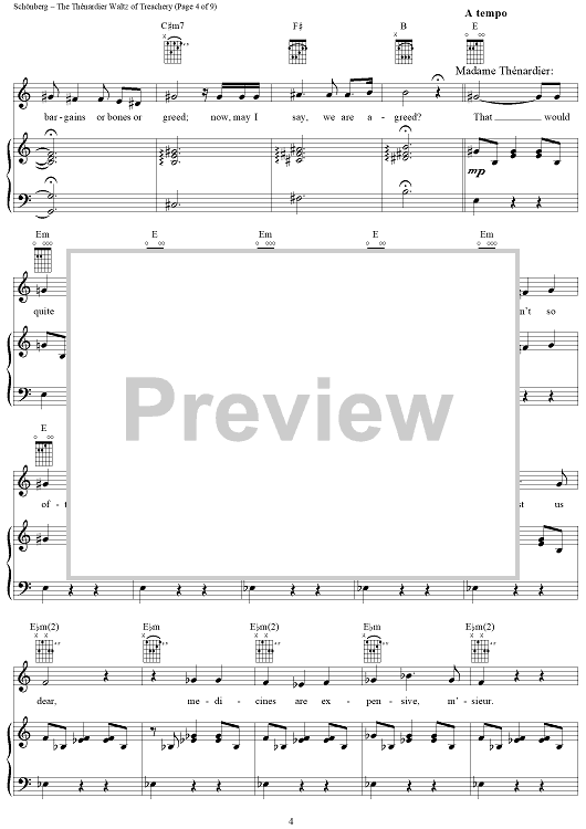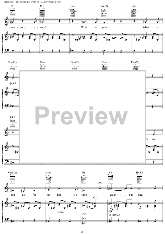 Digital Sheet Music for The Thenardier Waltz Of Treachery by Claude-Michel Schonberg, Herbert Kretzmer, Alain Boublil, Jean-Marc Natel scored for Piano/Vocal/Chords; id:367178