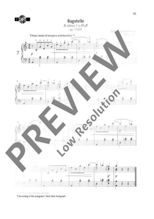 The Easy Concert Pieces series by the experienced piano teacher Monika Twelsiek presents easy piano pieces for beginners in progressive order. Three volumes have already been published. These pieces are intended to complement a piano tutorial method and are particularly suitable for performance at auditions, concerts, competitions and examinations. They offer varied repertoire in a broad selection of pieces from the Baroque, Classical, Romantic and Modern eras. Volume 3 is aimed at advanced players who wish to refine their expression and personal interpretation. The pieces demand a great deal of dexterity, a high sense of rhythm, articulation and phrasing, polyphonic playing (polyphony even in one hand) and tonal differentiation of the piano setting. Also available: Volume 1 (ED 22547) is meant for beginners. The pieces span a single octave and stay within five-finger positions. Other criteria for the selection of the pieces are simple rhythms and very easy chord playing. Crossing the thumb under, polyphony and pedal are not required yet. Volume 2 (ED 22548) extends the range to two octaves. Hand turns (crossing the thumb under), pedal, simple polyphony and three- or four-part chords all feature in Volume 2, as do simple ornaments, playing cantabile and differentiating between melody and accompaniment.