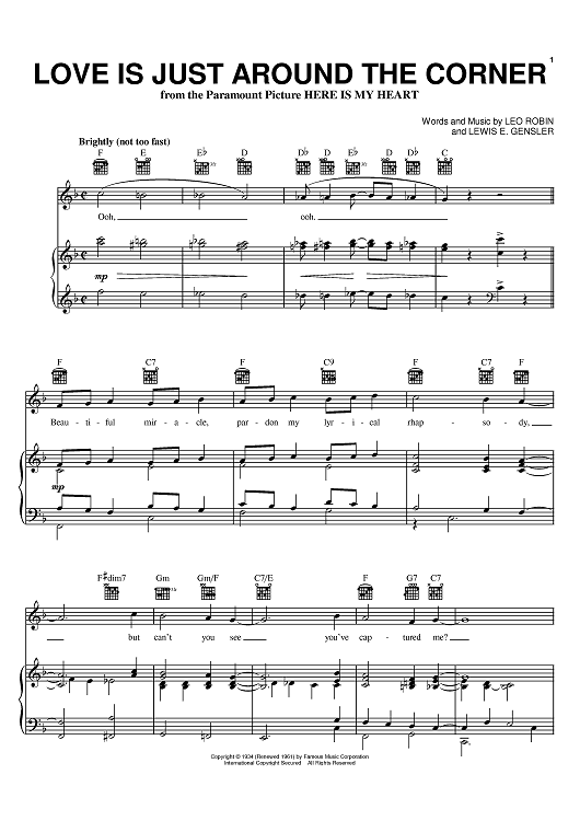 Digital Sheet Music for Love Is Just Around The Corner by Leo Robin, Coleman Hawkins, Lewis E. Gensler scored for Piano/Vocal/Chords; id:370858