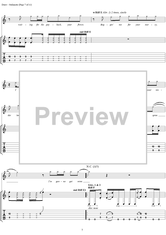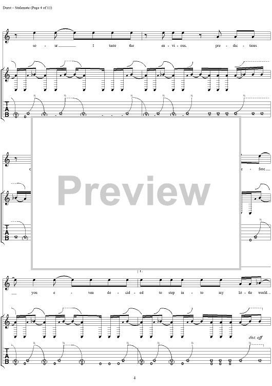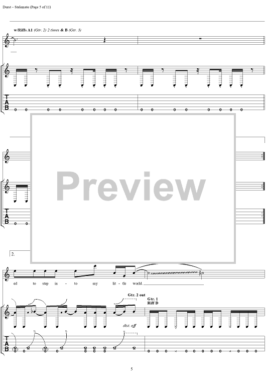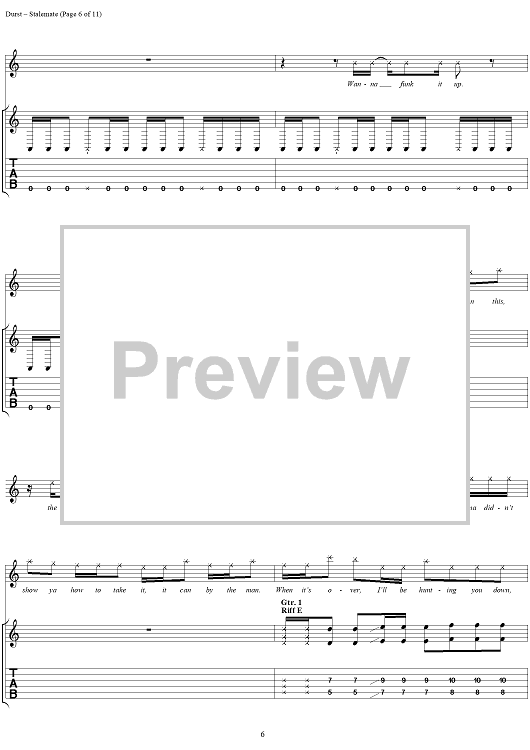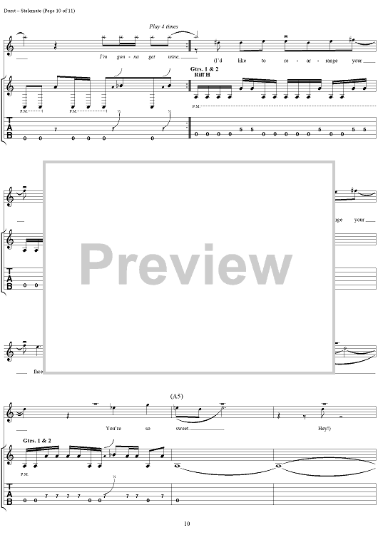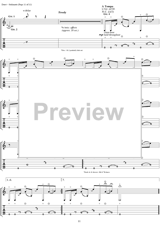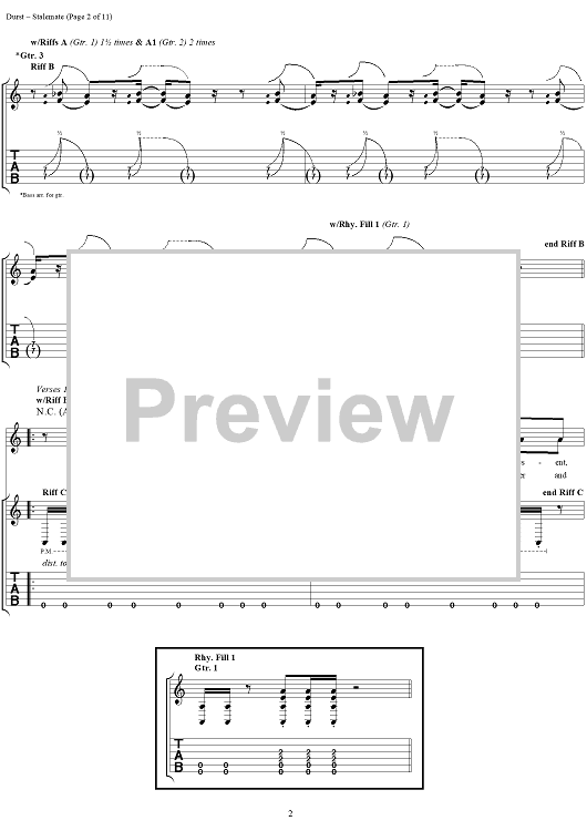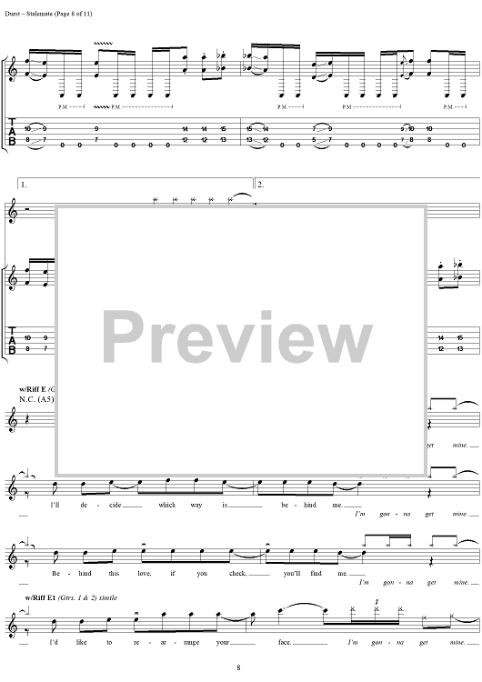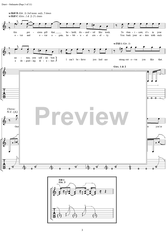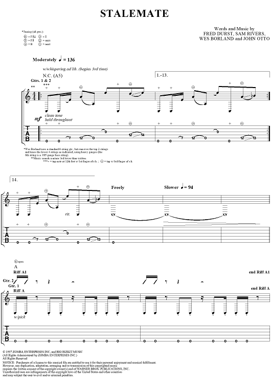 Digital Sheet Music for Stalemate by Wes Borland, Sam Rivers, John Otto, Fred Durst, Limp Bizkit scored for Guitar Tab/Vocal; id:189354
