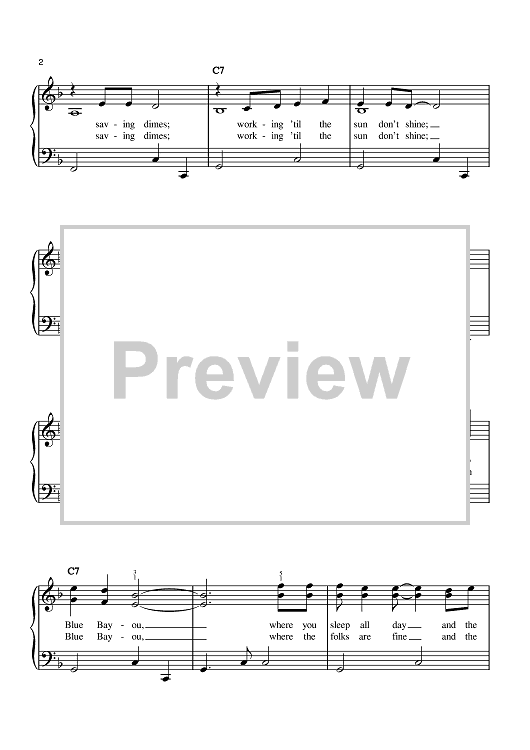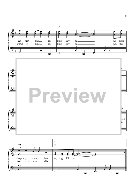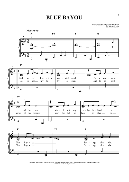 Digital Sheet Music for Blue Bayou by Roy Orbison, Linda Ronstadt, Joe Melson scored for Easy Piano; id:367949