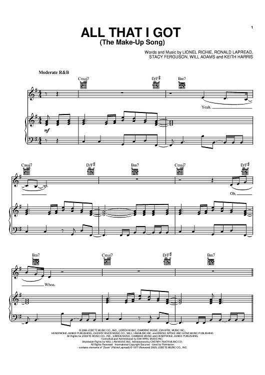 Digital Sheet Music for All That I Got (The Make-Up Song) by Lionel Richie, Fergie, will.i.am, Keith Harris, Ronald LaPread scored for Piano/Vocal/Chords; id:402238