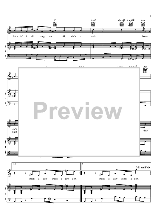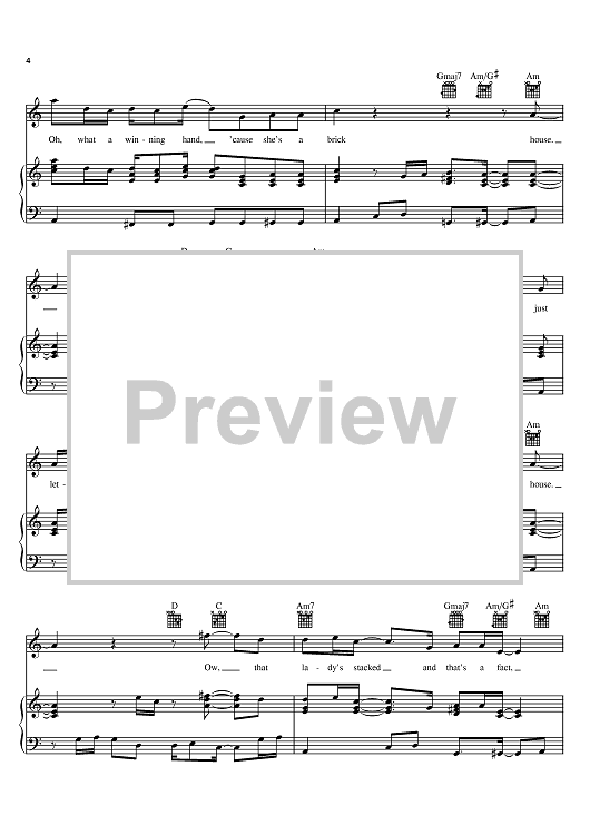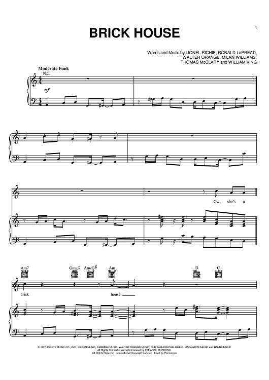 Digital Sheet Music for Brick House by Lionel Richie, William King, Commodores, Ronald LaPread, Thomas McClary, Walter Orange, Milan Williams scored for Piano/Vocal/Chords; id:369030