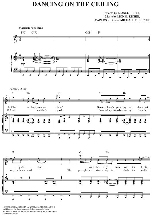 Digital Sheet Music for Dancing on the Ceiling by Lionel Richie, Carlos Rios, Michael Frenchik scored for Piano/Vocal/Chords; id:283852