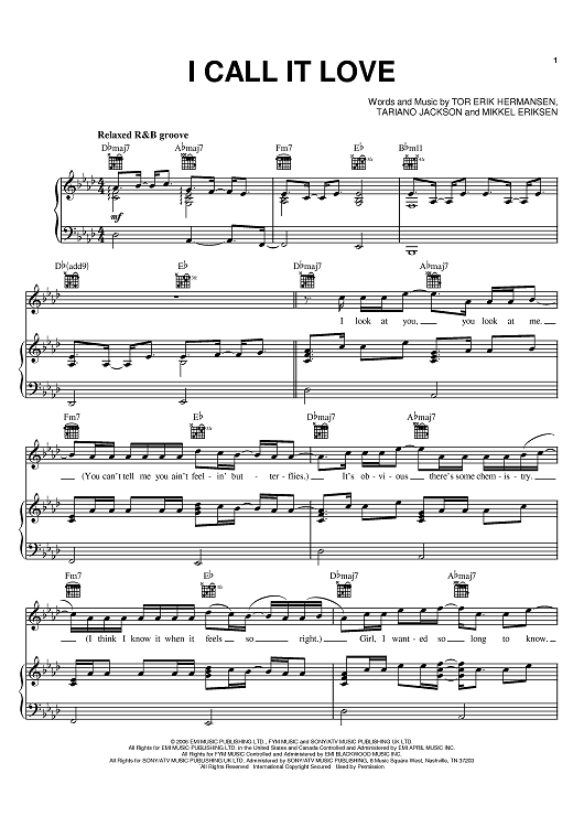Digital Sheet Music for I Call It Love by Lionel Richie, Tor Erik Hermansen, Tariano Jackson, Mikkel Eriksen scored for Piano/Vocal/Chords; id:393747