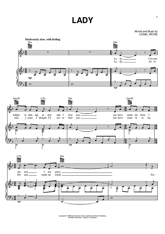 Digital Sheet Music for Lady by Lionel Richie, Kenny Rogers scored for Piano/Vocal/Chords; id:380986