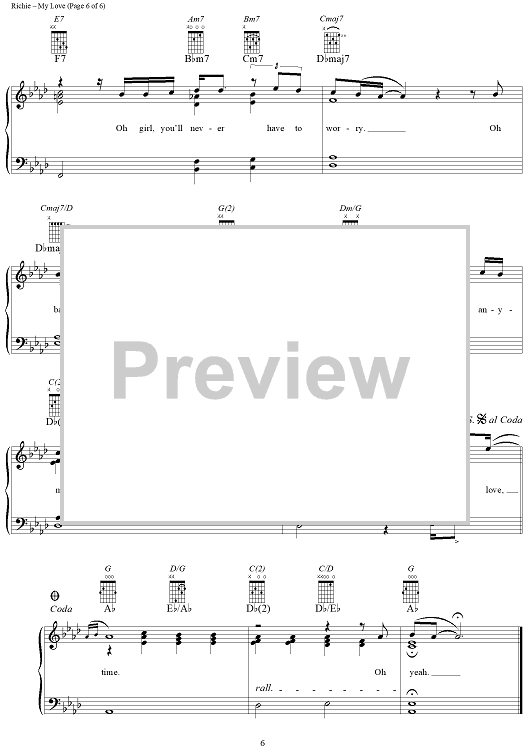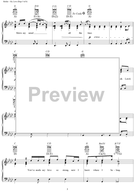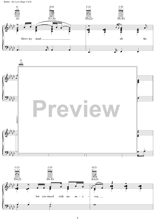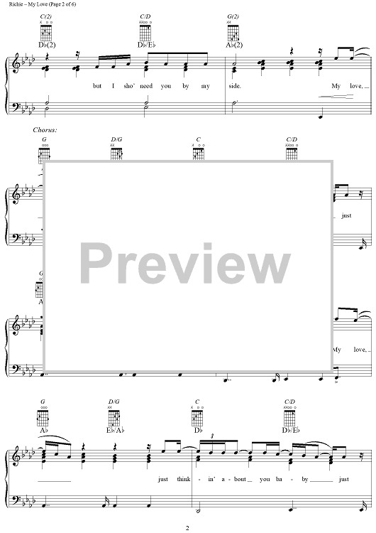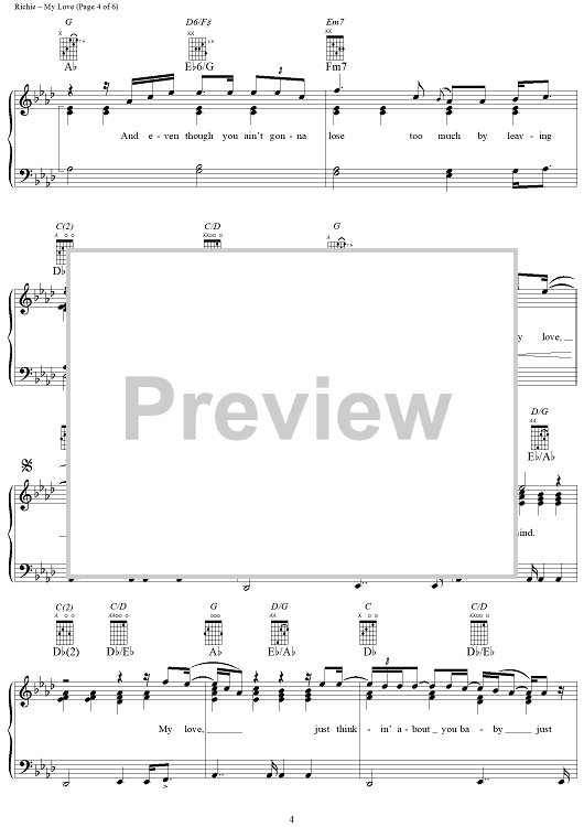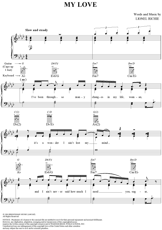 Digital Sheet Music for My Love by Lionel Richie scored for Piano/Vocal/Chords; id:255666