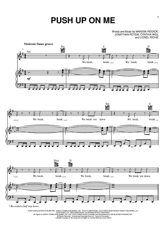 Digital Sheet Music for Push Up On Me by Lionel Richie, Cynthia Weil, Rihanna, Jonathan Rotem, Makeba Riddick scored for Piano/Vocal/Chords; id:402838