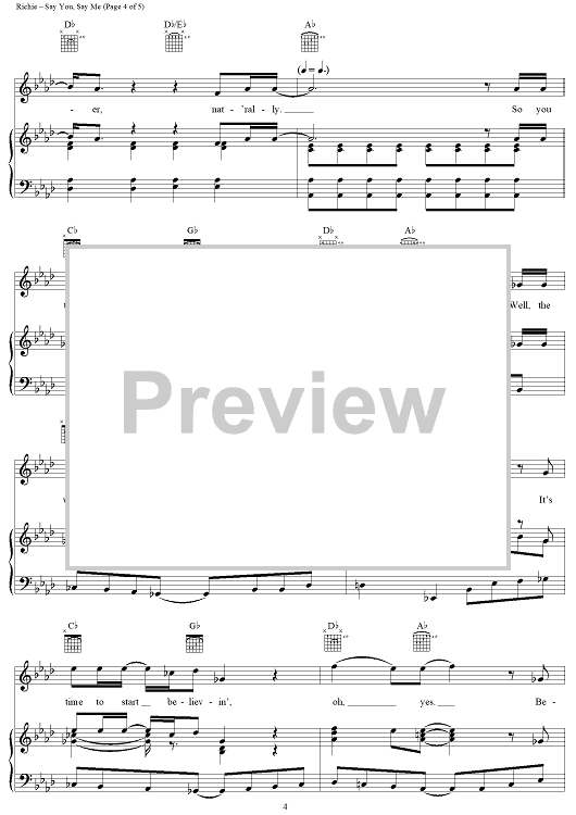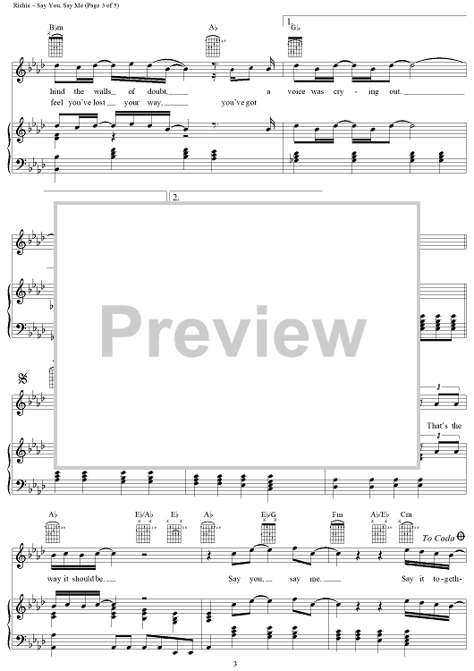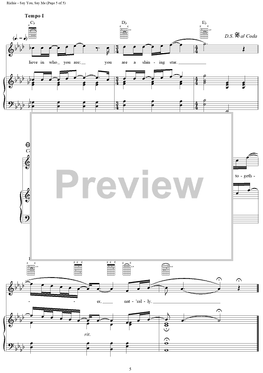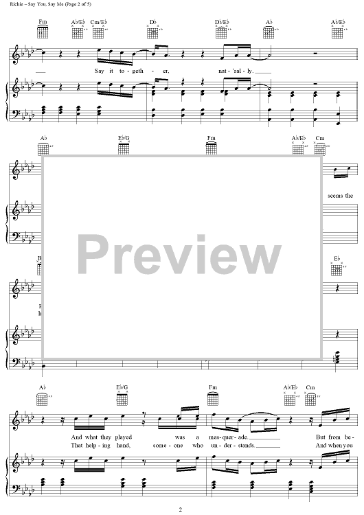 Digital Sheet Music for Say You, Say Me by Lionel Richie scored for Piano/Vocal/Chords; id:124243