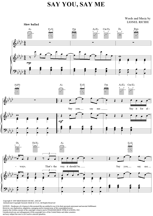 "Say You, Say Me" Sheet Music by Lionel Richie