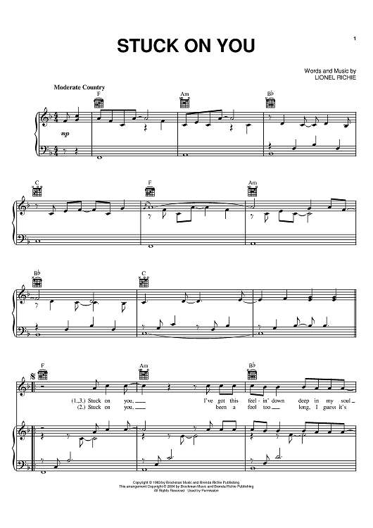 Digital Sheet Music for Stuck On You by Lionel Richie scored for Piano/Vocal/Chords; id:380989