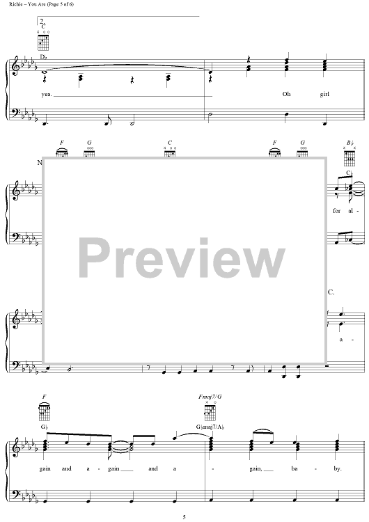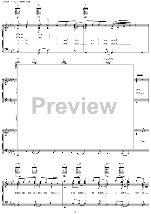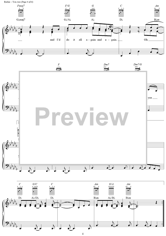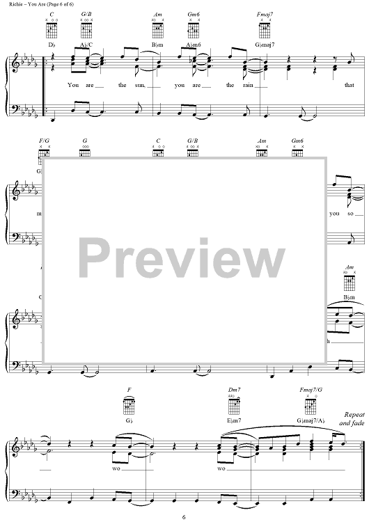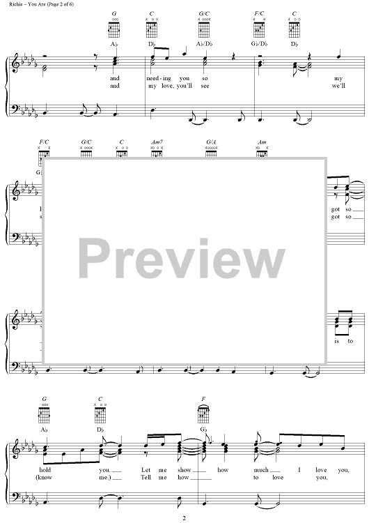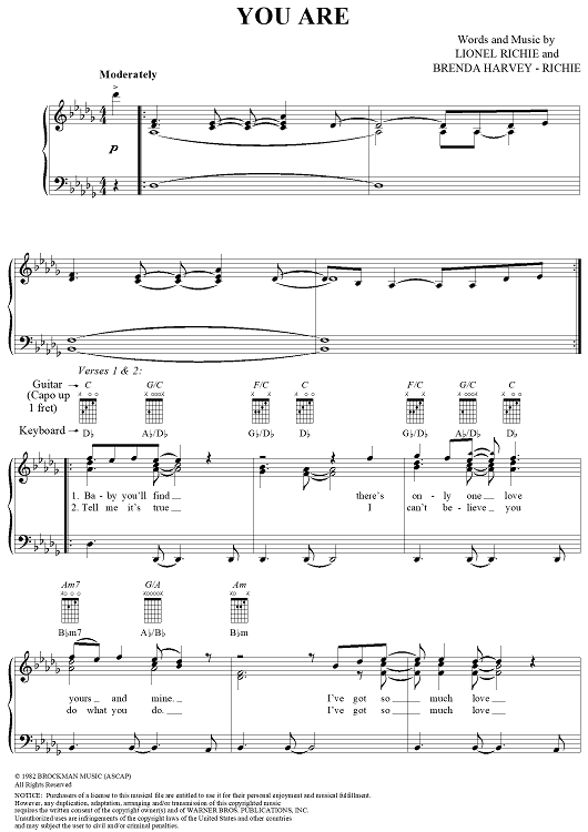 Digital Sheet Music for You Are by Lionel Richie, Brenda Harvey-Richie scored for Piano/Vocal/Chords; id:255689