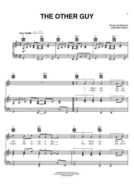 Digital Sheet Music for The Other Guy by Graham Goble, Little River Band scored for Piano/Vocal/Chords; id:381546
