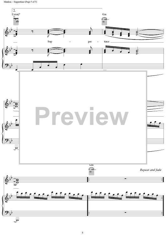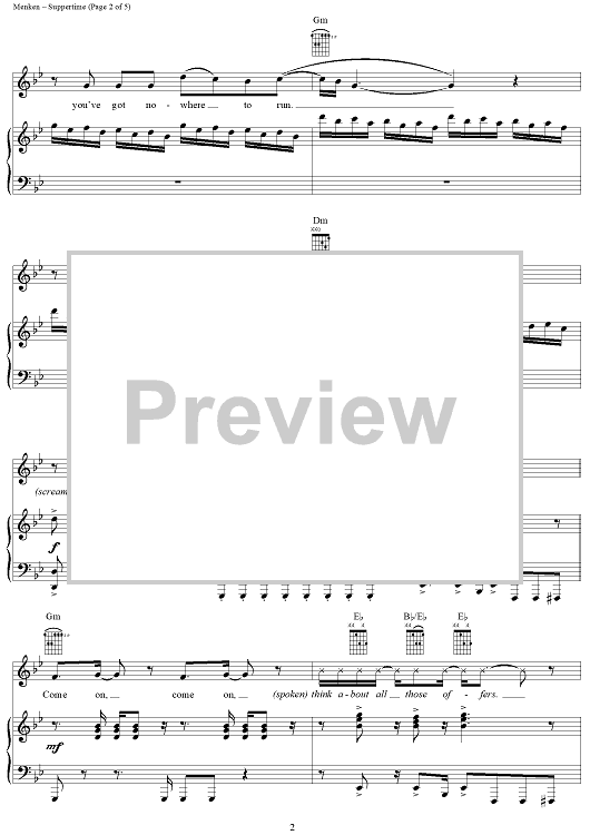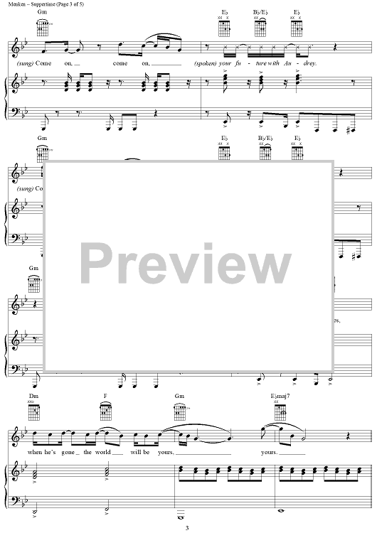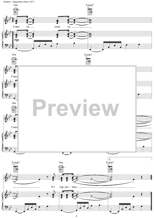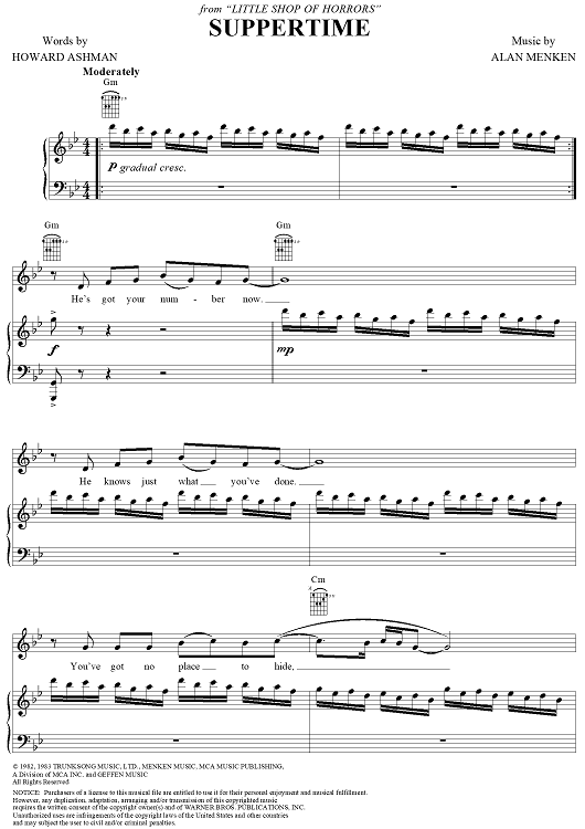 Digital Sheet Music for Suppertime by Alan Menken, Howard Ashman scored for Piano/Vocal/Chords; id:308115