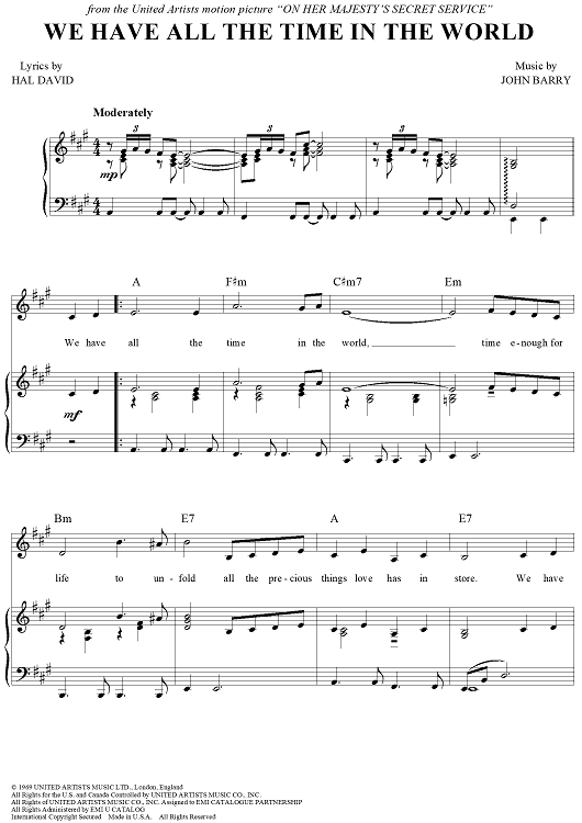 "We Have All The Time In The World" Sheet Music by Louis Armstrong