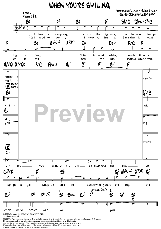 Digital Sheet Music for When You're Smiling by Louis Armstrong, Mark Fisher, Larry Shay, Joe Goodwin, Michael Buble scored for Lead Sheet; id:315164