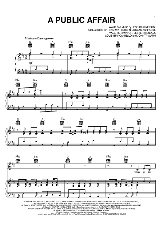 Digital Sheet Music for A Public Affair by Nickolas Ashford, Valerie Simpson, Jessica Simpson, Louis Biancaniello, Sam Watters, Lester Mendez, Johnta Austin, Greg Kurstin scored for Piano/Vocal/Chords; id:392685