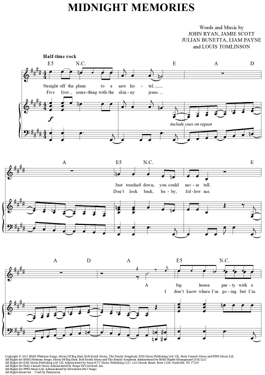 Digital Sheet Music for Midnight Memories by One Direction, Liam Payne, Louis Tomlinson, Jamie Scott, Julian Bunetta, John Ryan scored for Piano/Vocal/Chords; id:443788