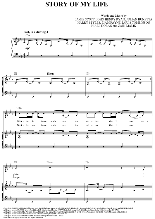 "Story Of My Life" Sheet Music by One Direction