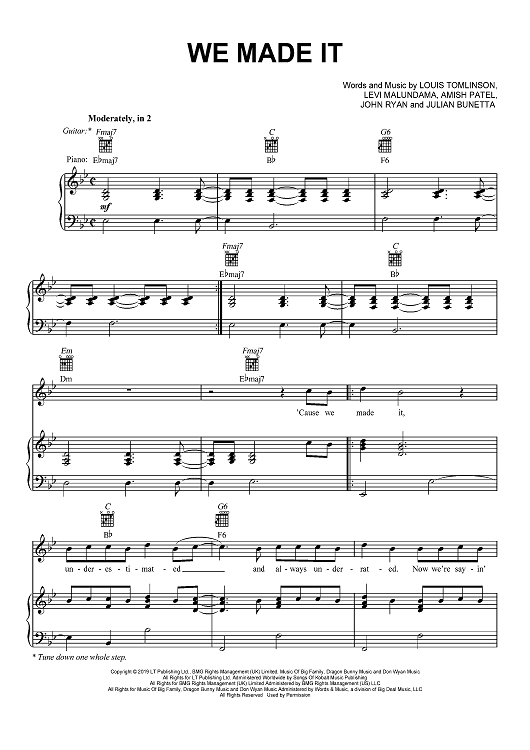 Digital Sheet Music for We Made It by Louis Tomlinson, Julian Bunetta, John Ryan, Levi Malundama, Amish Patel scored for Piano/Vocal/Chords; id:467868
