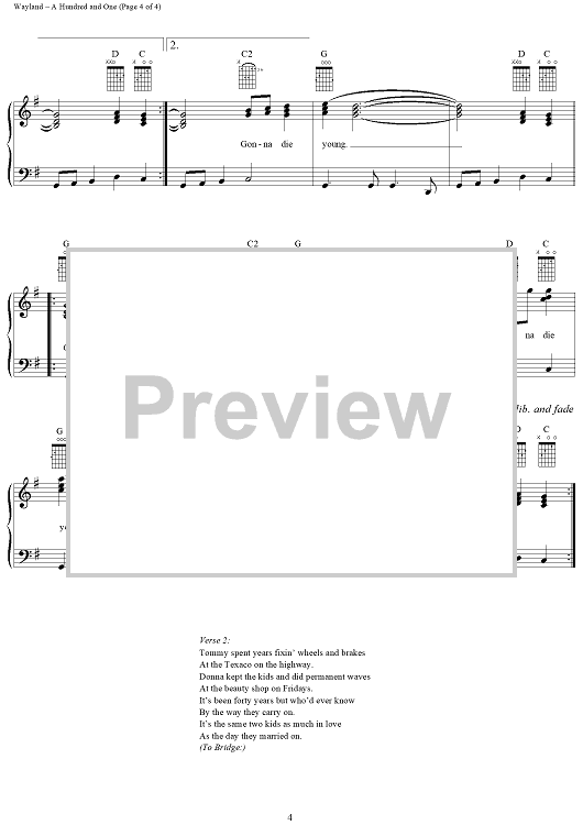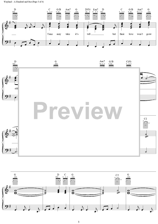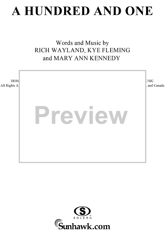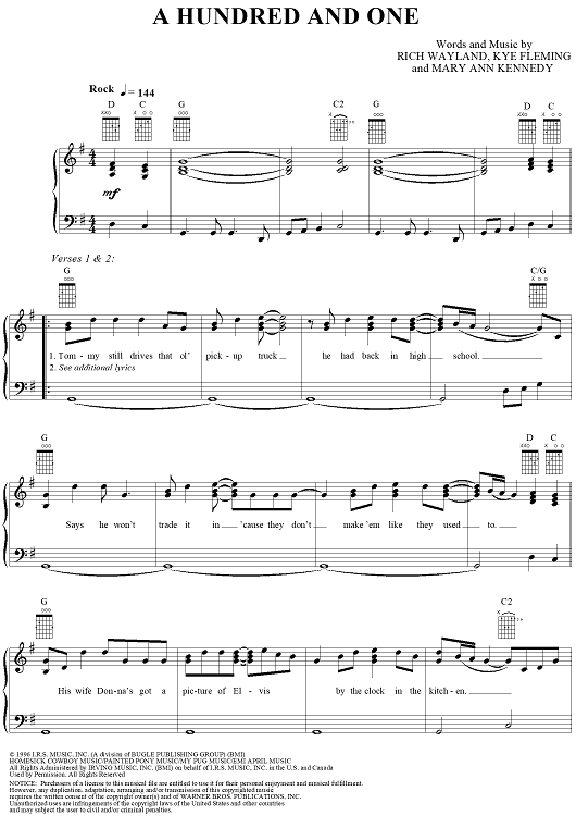 Digital Sheet Music for A Hundred and One by Bryan White, Mary Ann Kennedy, Rich Wayland, Kye Fleming scored for Piano/Vocal/Chords; id:220416