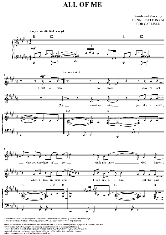 Digital Sheet Music for All of Me by Bob Carlisle, Dennis Patton scored for Piano/Vocal/Chords; id:254432
