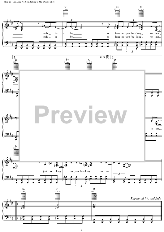 Digital Sheet Music for As Long As You Belong To Me by Chris Waters, Holly Dunn, Tom Shapiro scored for Piano/Vocal/Chords; id:143703