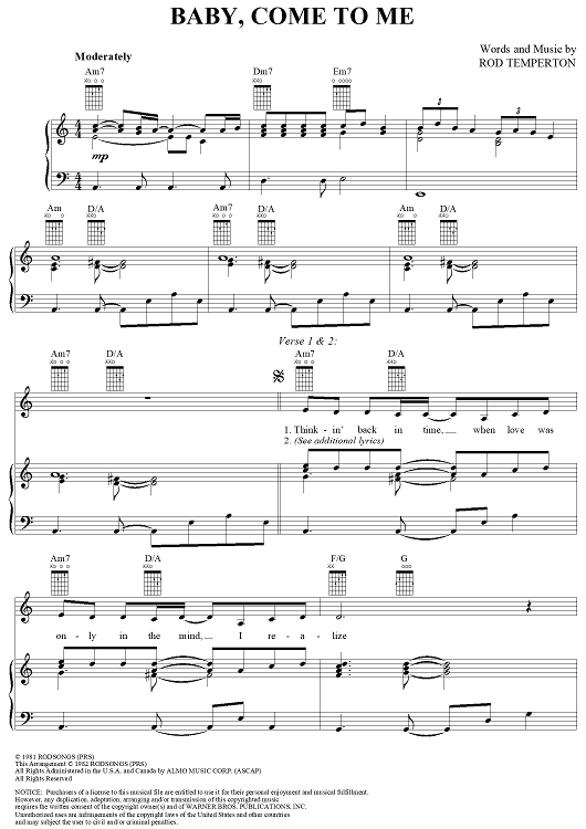 Digital Sheet Music for Baby, Come to Me by Rod Temperton, Patti Austin, James Ingram scored for Piano/Vocal/Chords; id:120164