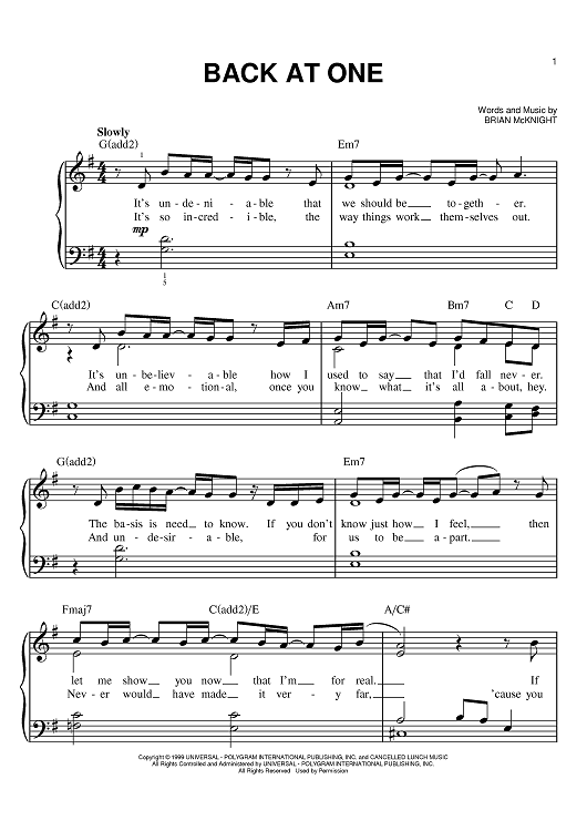 Digital Sheet Music for Back At One by Brian McKnight scored for Easy Piano; id:388900