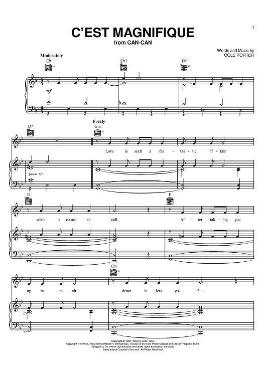 Digital Sheet Music for C'est Magnifique by Cole Porter scored for Piano/Vocal/Chords; id:395194