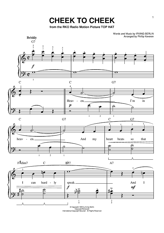 Digital Sheet Music for Cheek To Cheek by Irving Berlin, Fred Astaire, Phillip Keveren scored for Easy Piano; id:392247