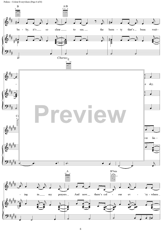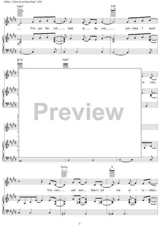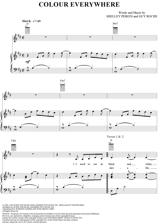 Digital Sheet Music for Colour Everywhere by Deana Carter, Shelly Peiken, Guy Roche scored for Piano/Vocal/Chords; id:168060