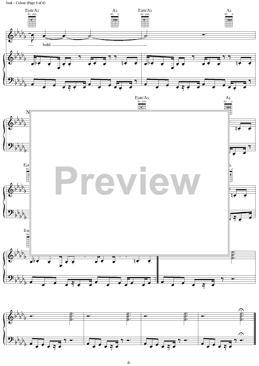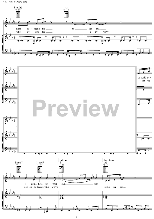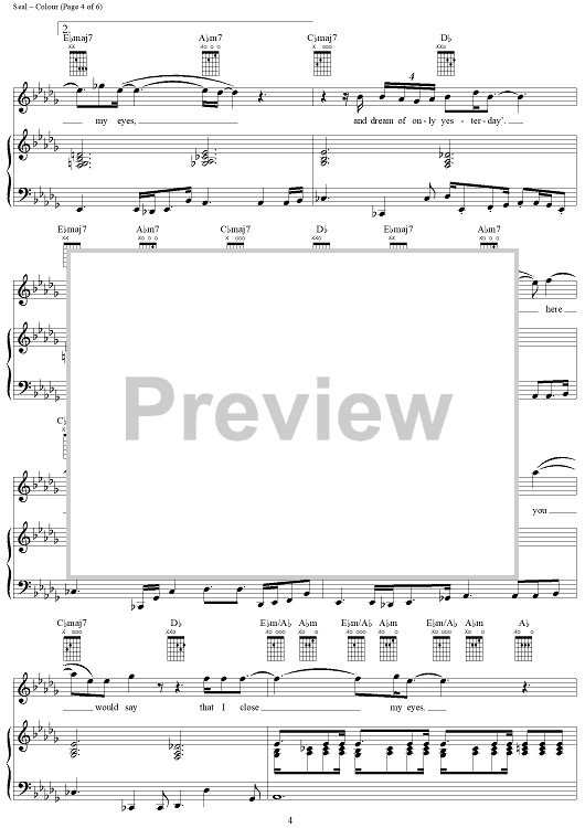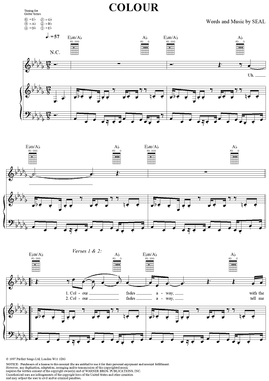 Digital Sheet Music for Colour by Seal scored for Piano/Vocal/Chords; id:241695