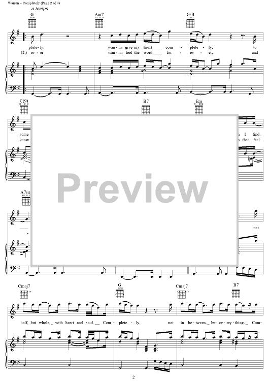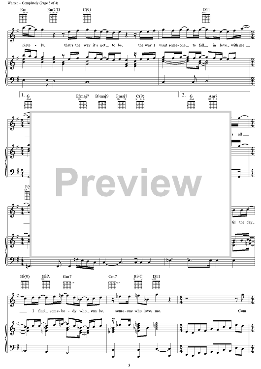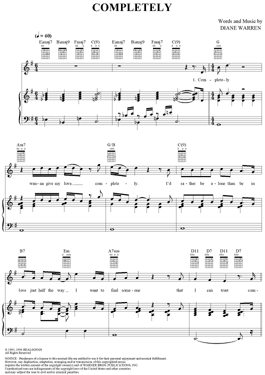 Digital Sheet Music for Completely by Diane Warren, Michael Bolton scored for Piano/Vocal/Chords; id:95940