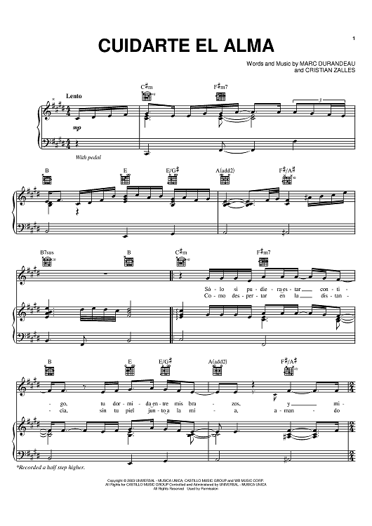 Digital Sheet Music for Cuidarte El Alma by Chayanne, Marc Durandeau, Cristian Zalles scored for Piano/Vocal/Chords; id:386016