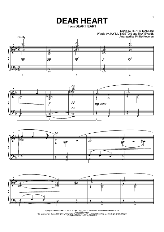 Digital Sheet Music for Dear Heart by Henry Mancini, Jay Livingston, Ray Evans, Phillip Keveren scored for Piano; id:381153