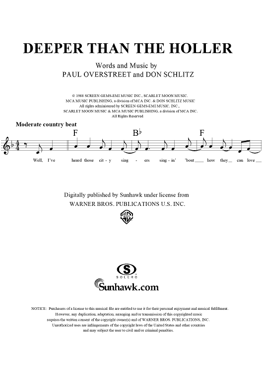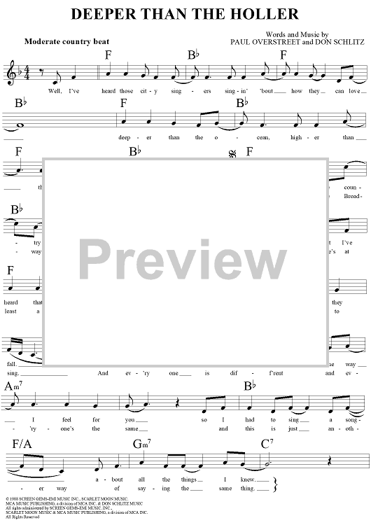 Digital Sheet Music for Deeper Than the Holler by Randy Travis, Don Schlitz, Paul Overstreet scored for Lead Sheet; id:119835